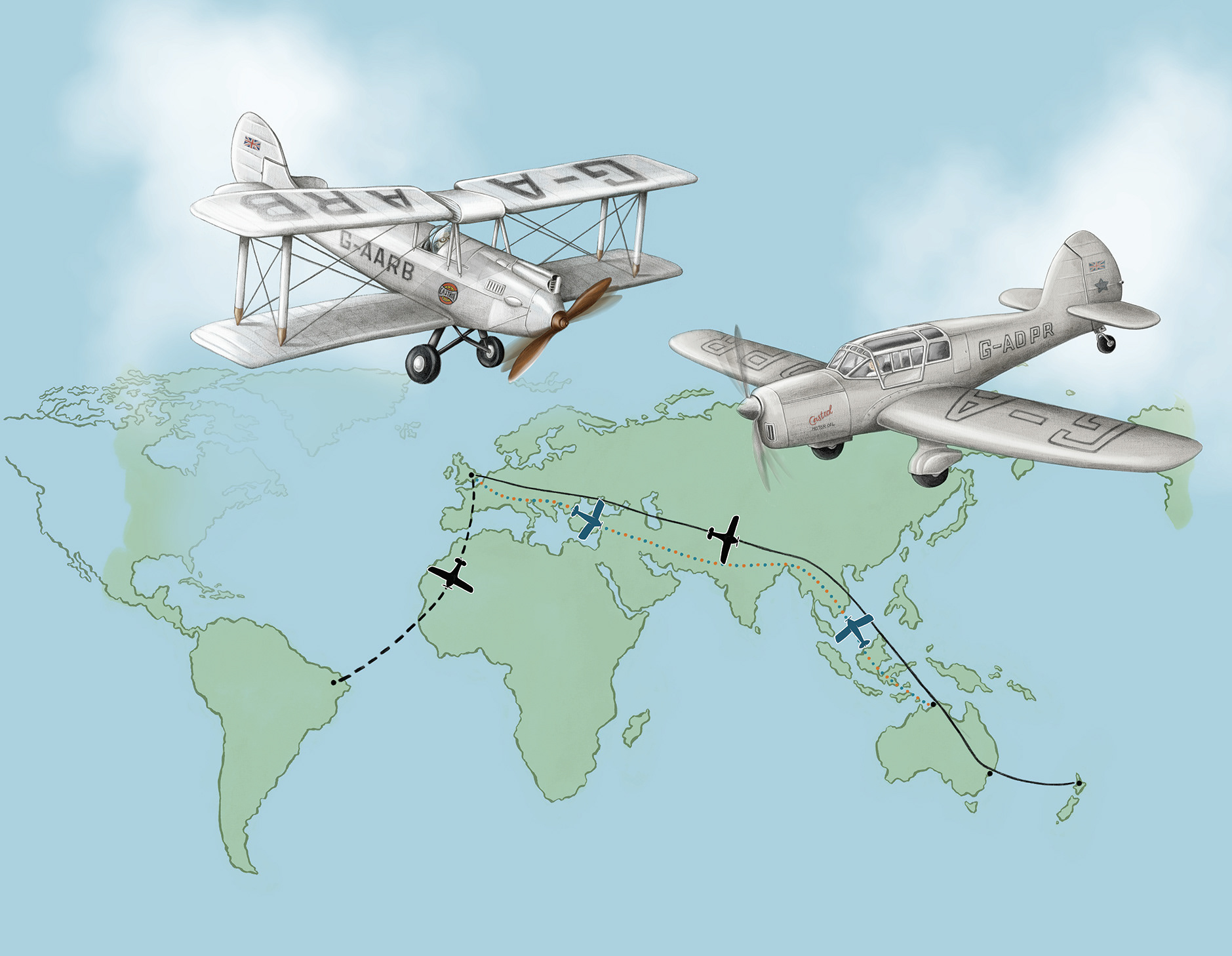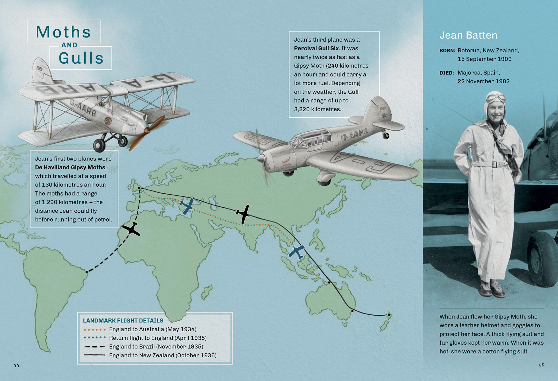 Illustrations of Jean Batten's planes created for the NZ School Journal Level 3 November 2018