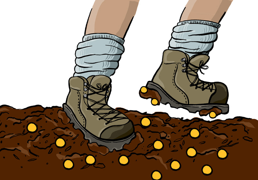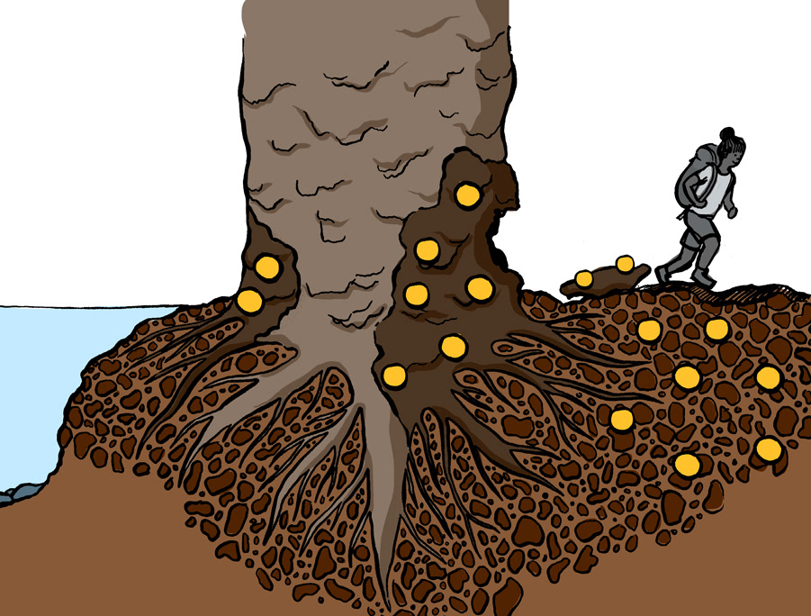 Illustrated stages of the lifecycle of Kauri Dieback disease for