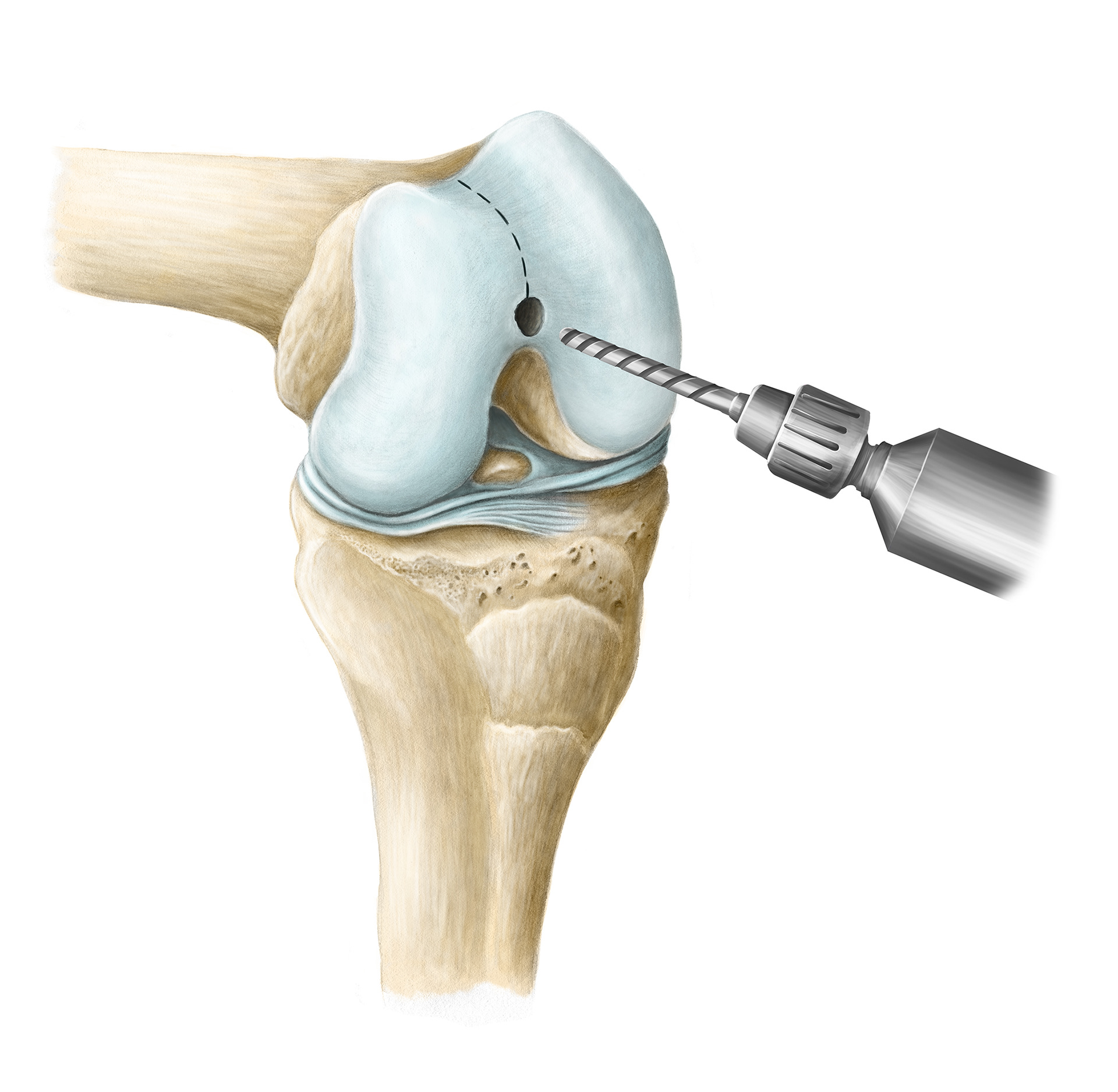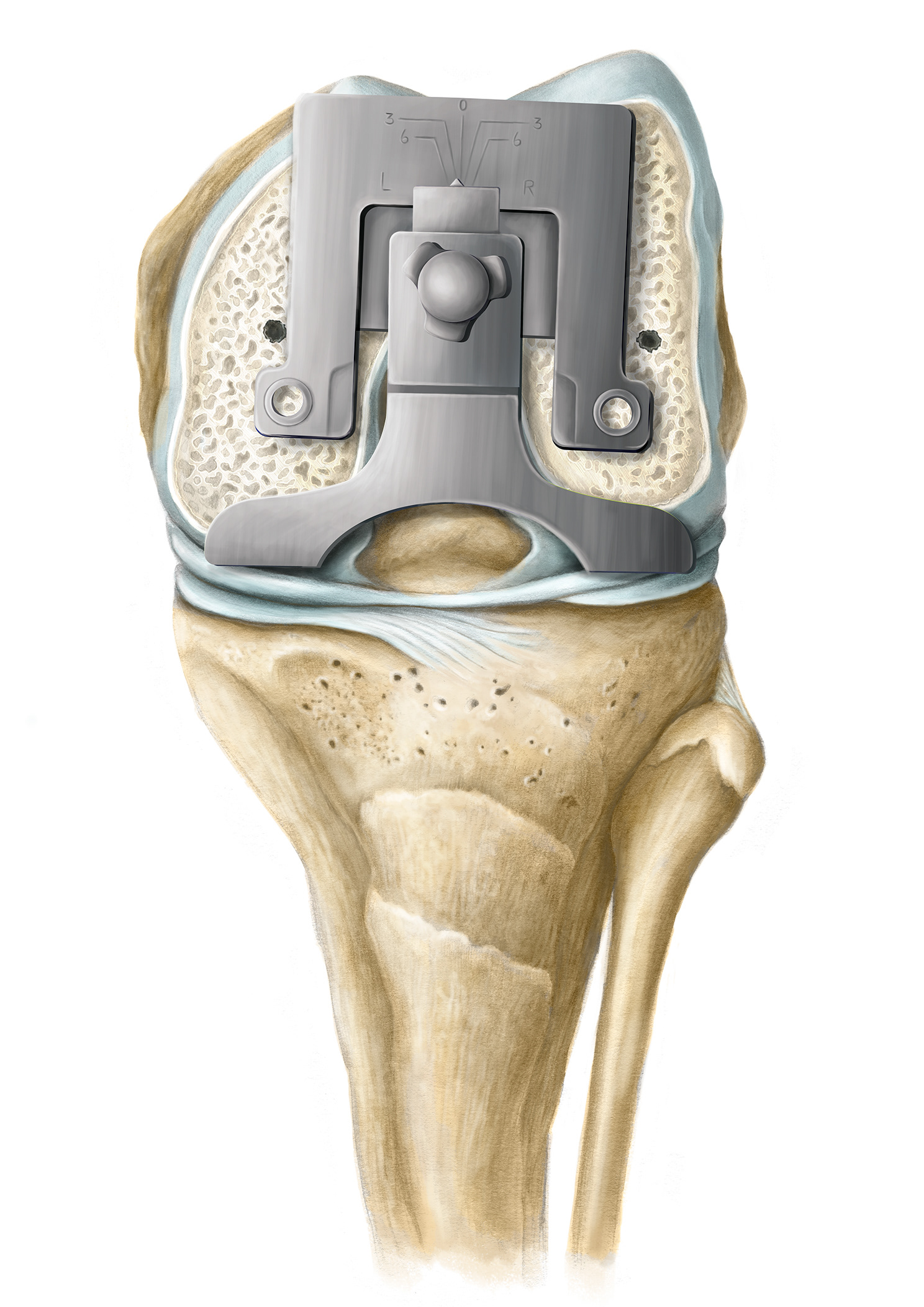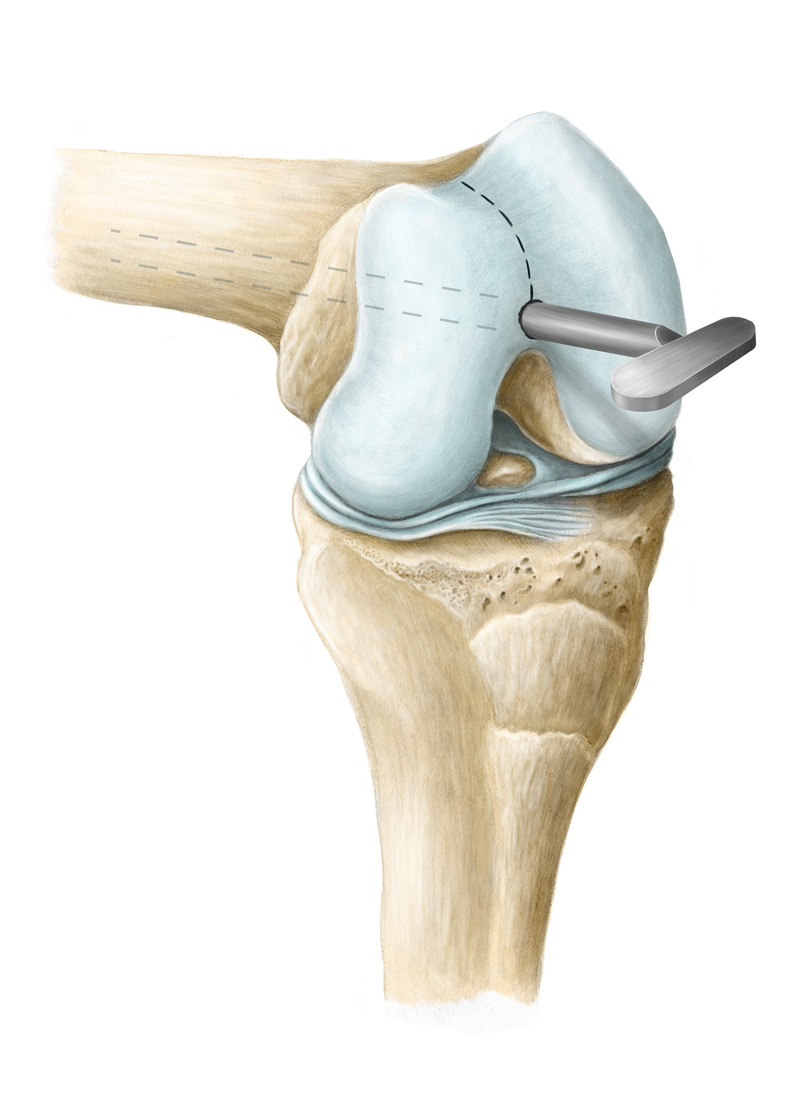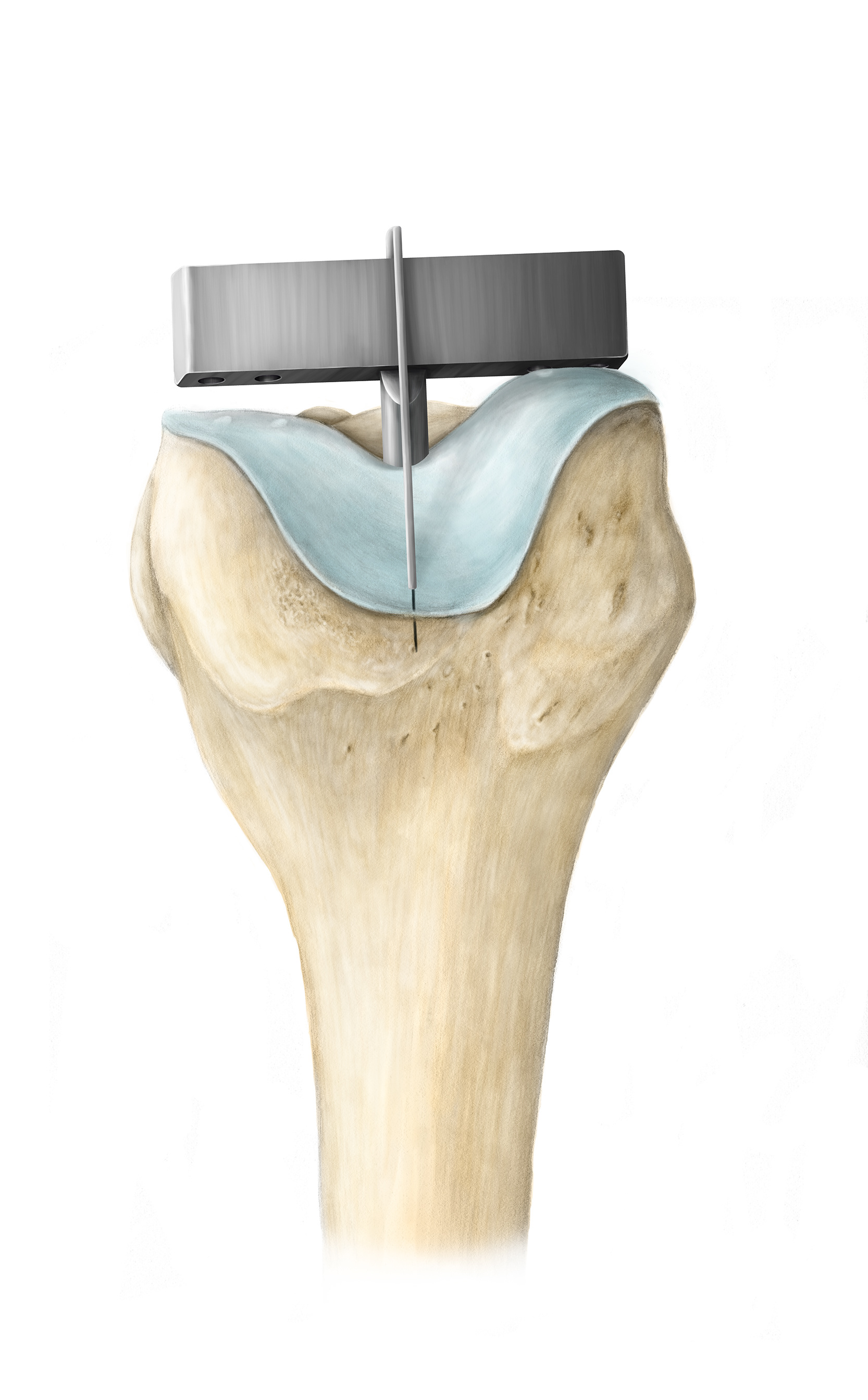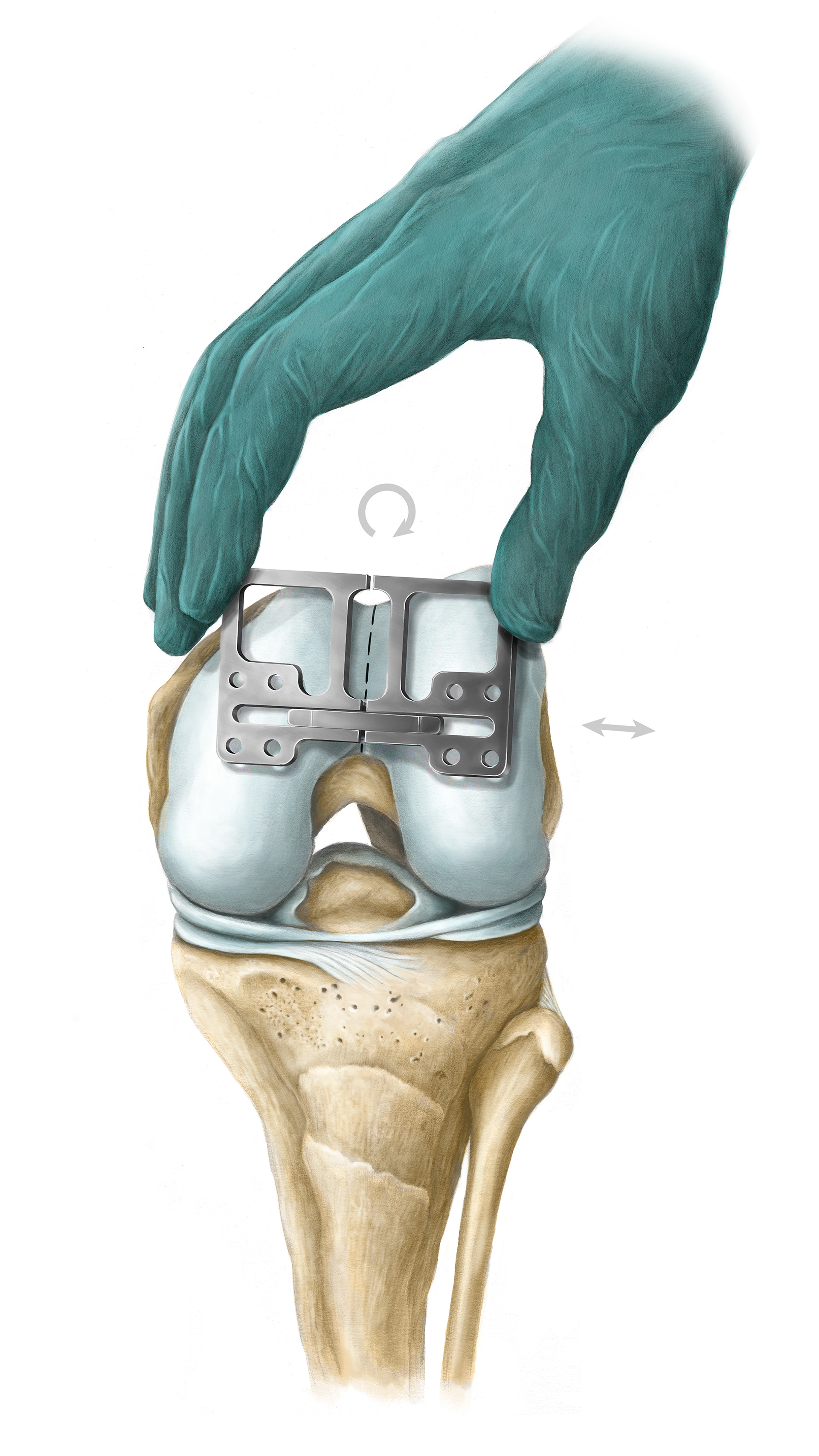 Illustrations for Sulcus Line Trochlear Alignment Guide (STAG) surgical protocol for ENZTEC.
